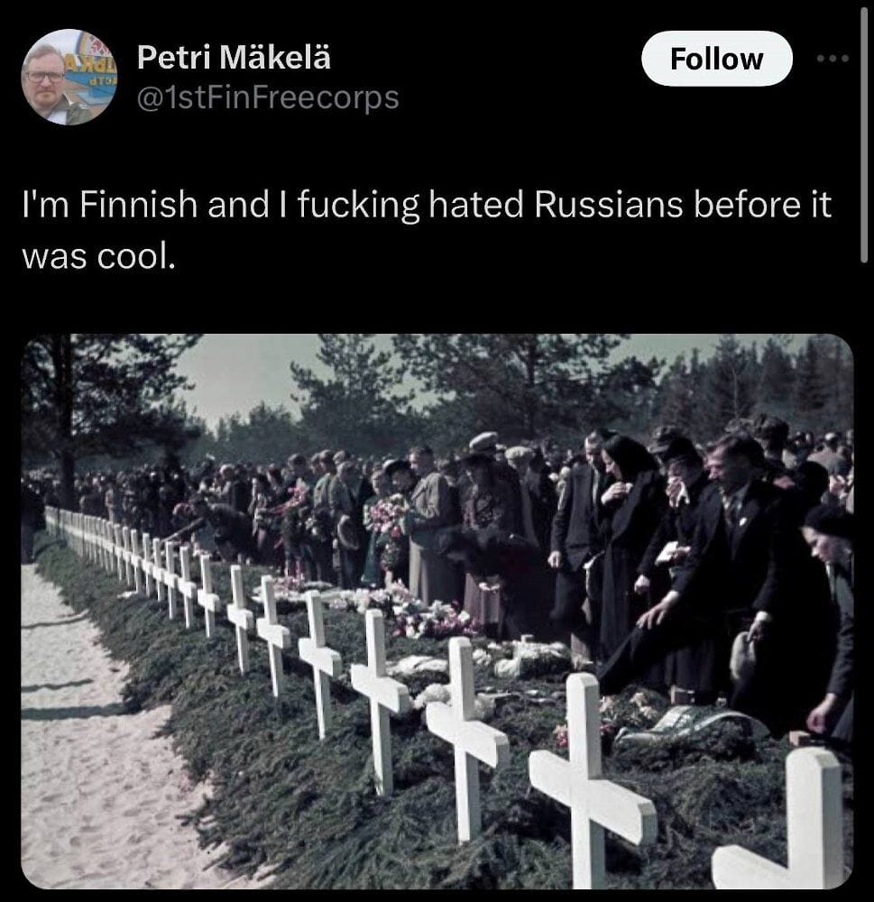 Ein anderer Nutzer aus Finnland postete ein Foto von einem Friedhof, auf dem die Opfer des sowjetisch-finnischen Krieges von 1939 begraben sind.