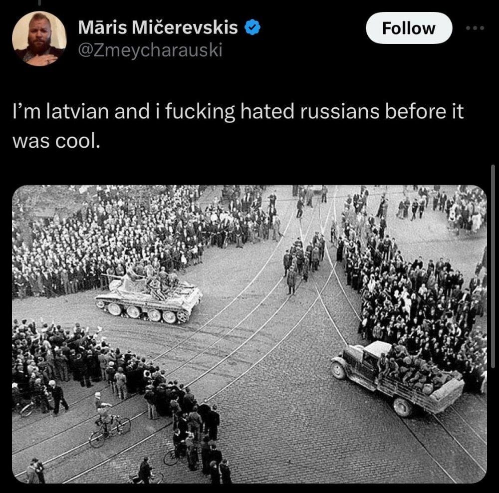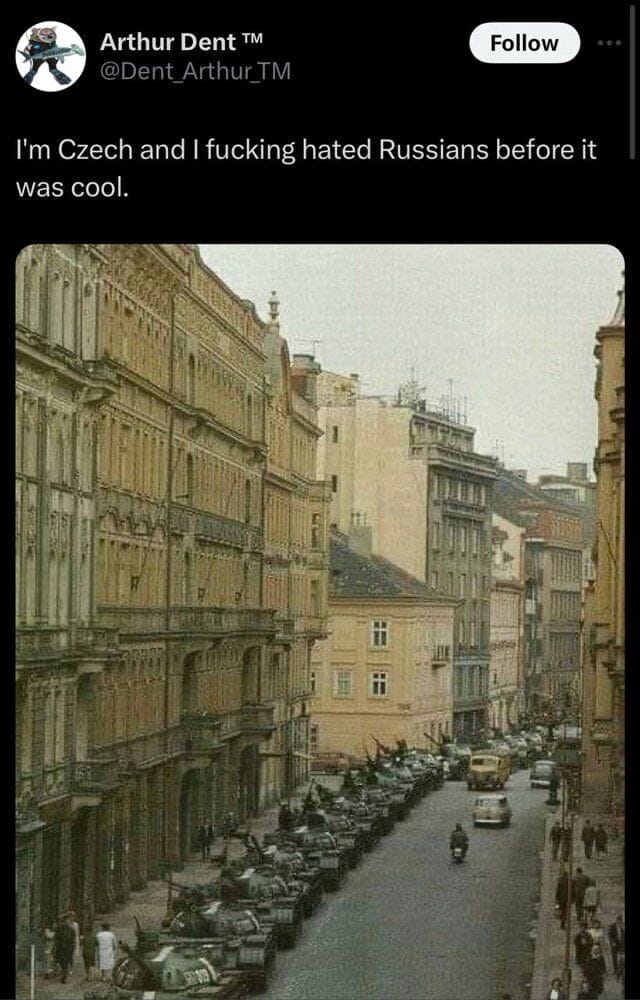 Ein Nutzer schrieb, er sei Tscheche und habe "RF gehasst, bevor es cool war". Er illustrierte seinen Tweet mit einem Foto von sowjetischen Panzern in Prag im Jahr 1968.