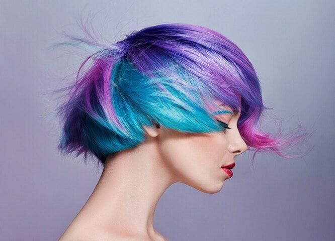 - Setzen Sie auf Farbe - anstatt eine komplizierte Frisur zu kreieren, akzentuieren Sie sie mit leuchtenden Farben. Wie eine monotone Farbexplosion und einzelne Tupfer.